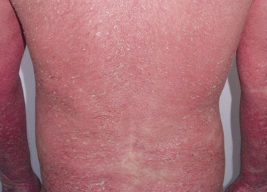 红皮病型银屑病是一种罕见的重症、累及全身大部分皮肤的一种特殊类型银屑病,但发病率在银屑病中是最低的,本病约占银屑病1%。红皮病型银屑病经常继发于一些难以控制的斑块型银屑病。表现为全身皮肤弥漫性潮红、浸润肿胀,并伴有大量糠状鳞屑,病程较长,易复发,不仅病情危重,而且治疗困难。