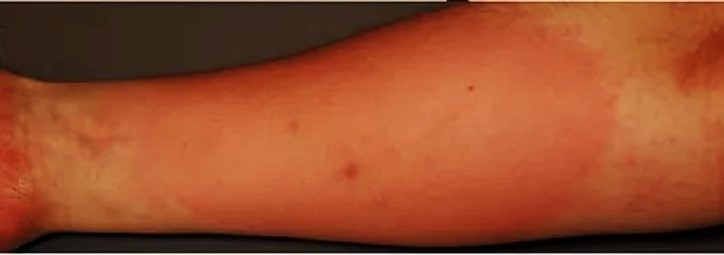 我们先从一个特殊病例来了解寒冷性荨麻疹。患者女,46岁,因“遇冷后局部红斑、风团伴瘙痒2月”就诊。随着病程发展,患者进食温热食物和冷饮料也会出现类似皮疹,但汗液分泌功能正常。既往存在乳胶过敏,过敏源检测对香蕉、荞麦、鸡蛋和坚果过敏。激发试验:以冰袋置于前臂约5分钟,随后激发部位出现红斑伴有瘙痒感,寒冷刺激试验阳性(见图a)。诊断为:局限性寒冷性荨麻疹。治疗以服用抗组胺药物苯磺酸贝他斯汀、地氯雷他定为主,前期疗效差,坚持口服治疗14个月后,上述症状逐渐消退,之后逐渐减少药量和服药频率,8个月后完全停药,之后未再复发。