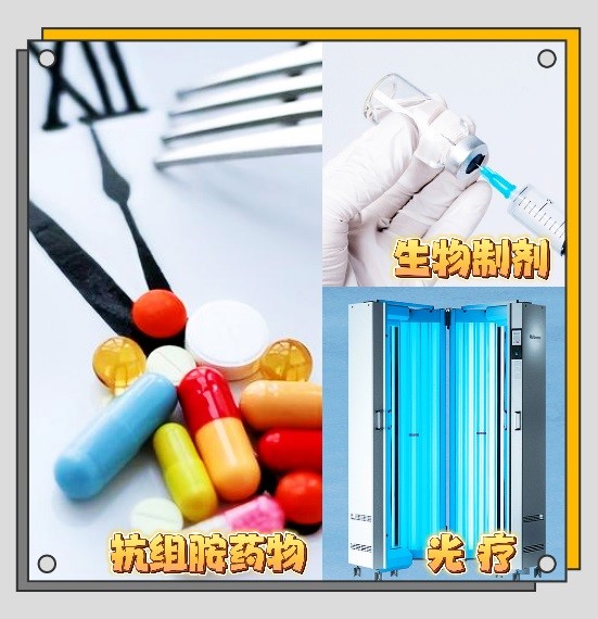和慢性自发性荨麻疹一样,部分患者对抗组胺药抵抗,可试行奥马珠单抗治疗。此外,运用白三烯受体拮抗剂联用抗组胺药、环孢素、IL-1拮抗剂、依那西普(TNF拮抗剂)、瑞利珠单抗(Reslizumab , IL -5拮抗剂)和UVB光疗等治疗冷性荨麻疹也均有成功的病例。