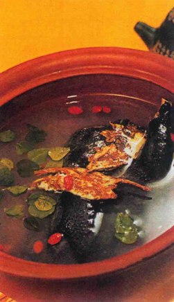 净乌鸡一只(750克),当归4克 枸杞子3克 生姜6克,碘盐8克,鲜味汁6克。