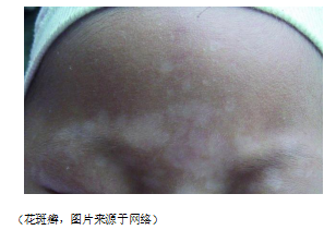 白色糠疹又名单纯糠疹,喜欢发生在儿童的脸部,亦可发生于上臂、颈、肩部、躯干和臀部等。典型皮损为边缘不清的圆形或卵圆形淡红色斑,蚕豆至硬币大小,大约数周后逐渐转变为淡白斑,表面覆盖少许细碎鳞屑。一般没有什么感觉,少数患者可有轻微瘙痒、刺痛等症状。