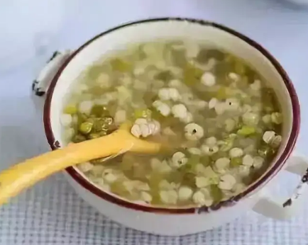 制法:将鲜荷叶洗净切碎,加水适量,煎煮15分钟,去渣取汁,加入洗净的绿豆,煮烂,根据个人口味放入少量冰糖调味即可。