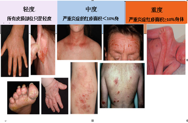 可由婴儿期演变而来,湿疹多发生于颈部、肘窝、腘窝和小腿伸侧,部分也可表现为全身的发痒性丘疹。