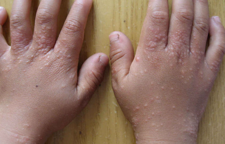 小朋友爱玩玩具、堆沙子,可怎么玩了一段时间,发现手背长了好多小丘疹,密密麻麻的,还有点痒?这可能是得了“摩擦性苔藓样疹”啦!