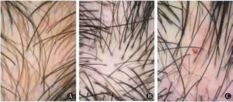 两个经常是兄弟关系,经常相互依存,由于很多脂溢性脱发患者发病之前就已经有脂溢性皮炎病史,大多数脂溢性脱发的患者头皮有发红,头皮油脂分泌异常,甚至部分头皮覆盖有淡褐色油腻性斑片,在皮肤镜下见毛发直径粗细不一(毛发直径的差异>20%),较多变细的毛发,亦见褐色毛周征/黄点征/毛囊周围褪色,所以可能是脂溢性皮炎促进了脂溢性脱发的发展。